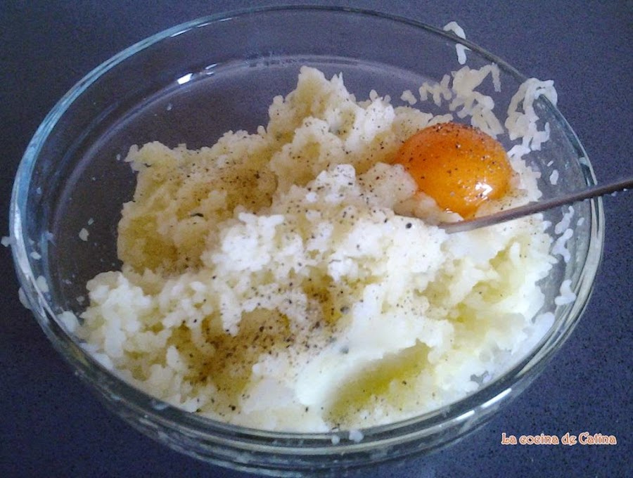 Cuando estén cocidas las pasamos con el pasa-puré o las machacamos con un tenedor, salpimentamos y añadimos las yemas de huevo, removemos con energía para que se mezclen bien.