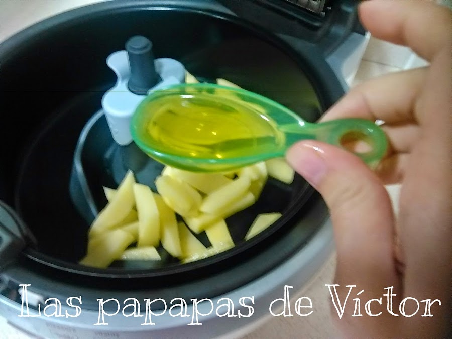 Sencillo; echar las patatas cortadas, lavadas y secadas con un papel de cocina