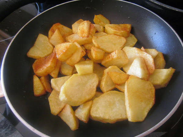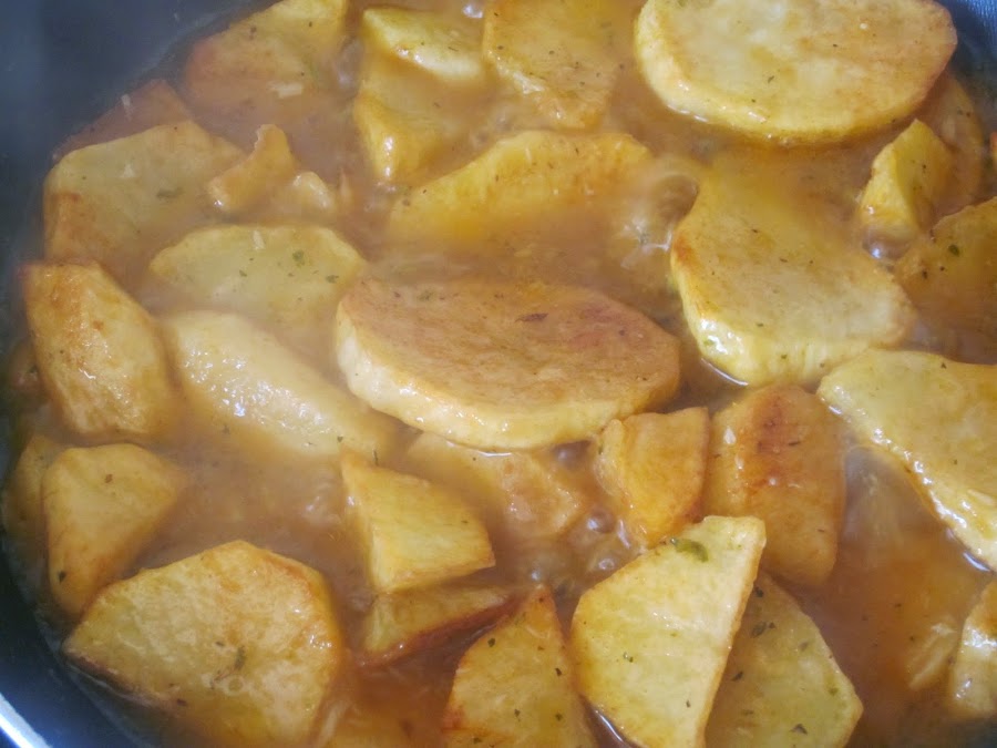 Esta forma de hacer las patatas es una forma de aprovechar las patatas fritas cuando nos sobran, con el majadillo y el caldo resultante se les da un hervor, y son muy sabrosas.