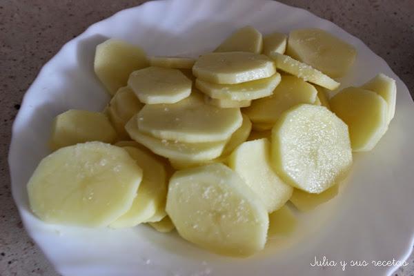 - 1-2 huevos o 1 por comensalSe pelan y pican las patatas a rodajas finas.