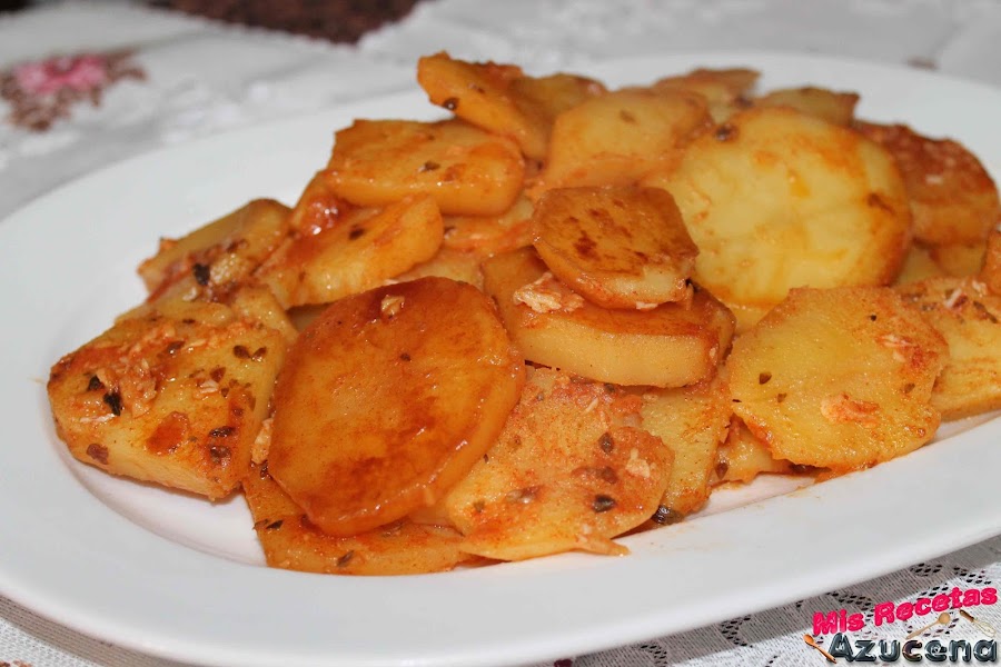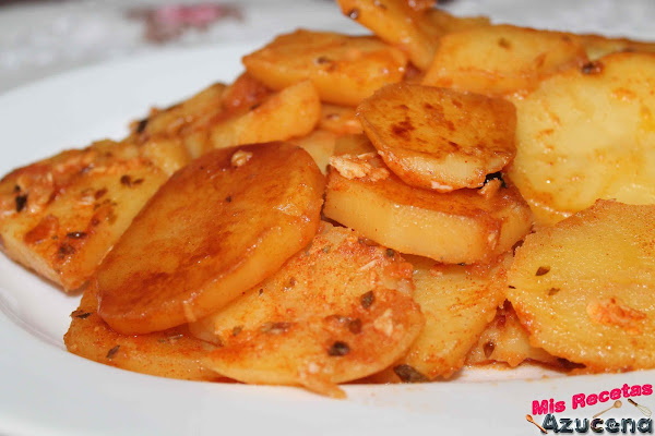 Ponemos una sartén con abundante aceite al fuego a fuego medio, cuando este caliente añadiremos sal a la las patatas y las ponemos a freír, si el aceite este muy caliente lo bajaremos un poco lo que queremos es que se ablanden no se pongan doraras, dependiendo del tipo de patata que utilicemos las tendremos más o menos tiempo, cuando estén blandas las sacaremos y las pondremos en una bandeja para dejarlas enfriar un poco no las escurrimos mucho necesitaremos el aceite que suelten.