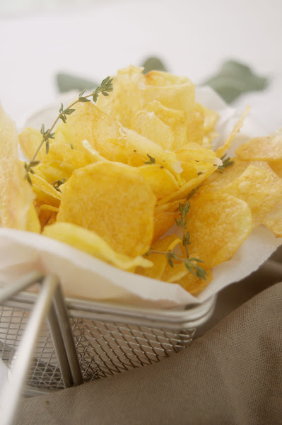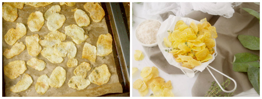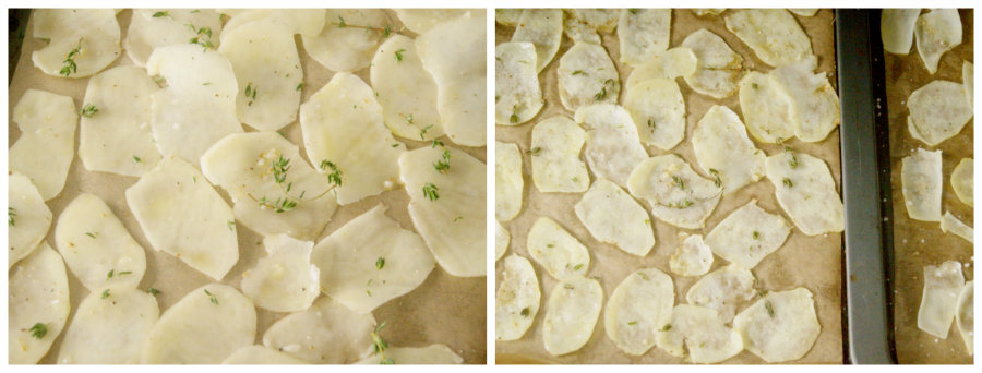 CRISPY BAKED POTATO CHIPS WITH BLACK PEPPER AND THYME