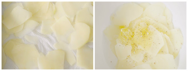 Place in a dish with some kitchen paper and repeat the process with the remaining potato slices until finish.
