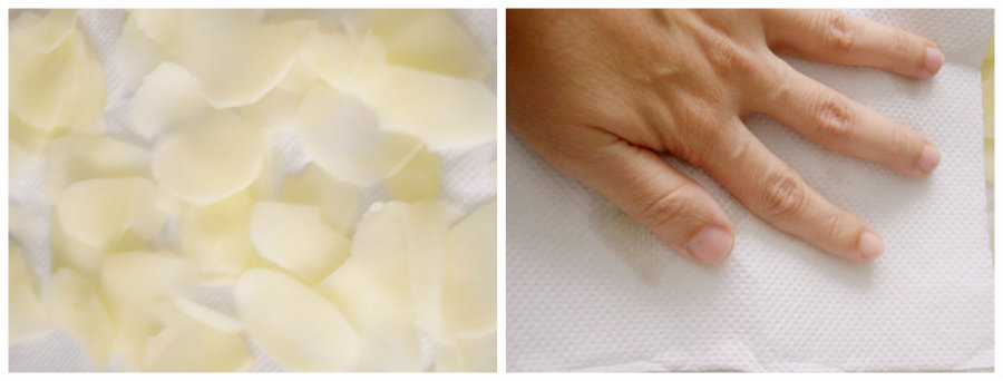 Cogemos unas cuantas de rodajas y las ponemos extendidas sobre un papel de cocina.