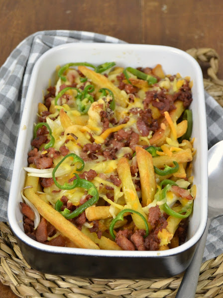 Esto es lo que pasa cuando te pones a limpiar una estantería llena de libros de cocina. Al final acabas mirando alguno y descubres una receta tan fácil y rica como estas patatas fritas con carne y queso estilo Tex-Mex ¡Fueron el final perfecto de una tarde de limpieza!