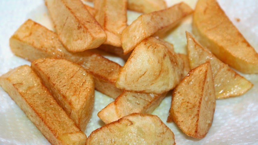 Prepara una sartén caliente con abundante aceite (de oliva o girasol) y fríe las patatas.