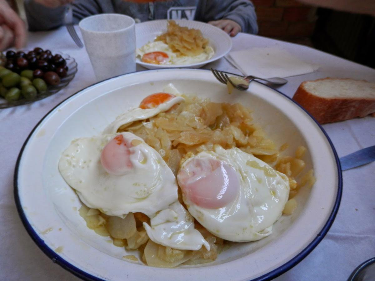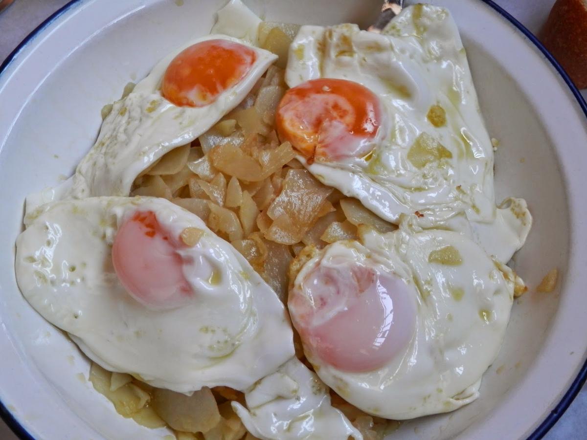 Freímos los huevos que queden blanditos y se echan por encima sin que se rompan.