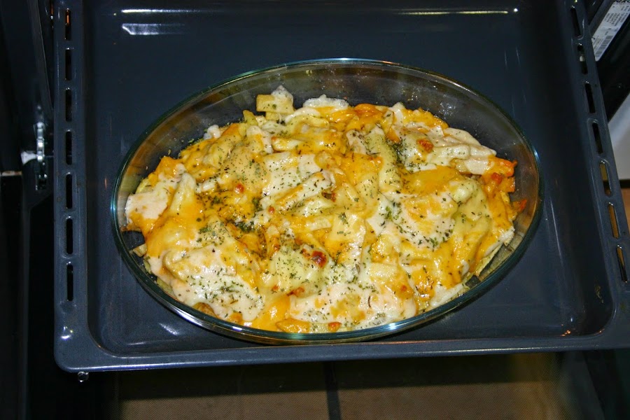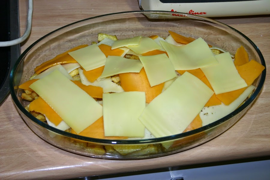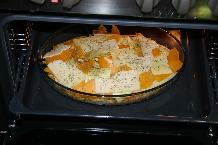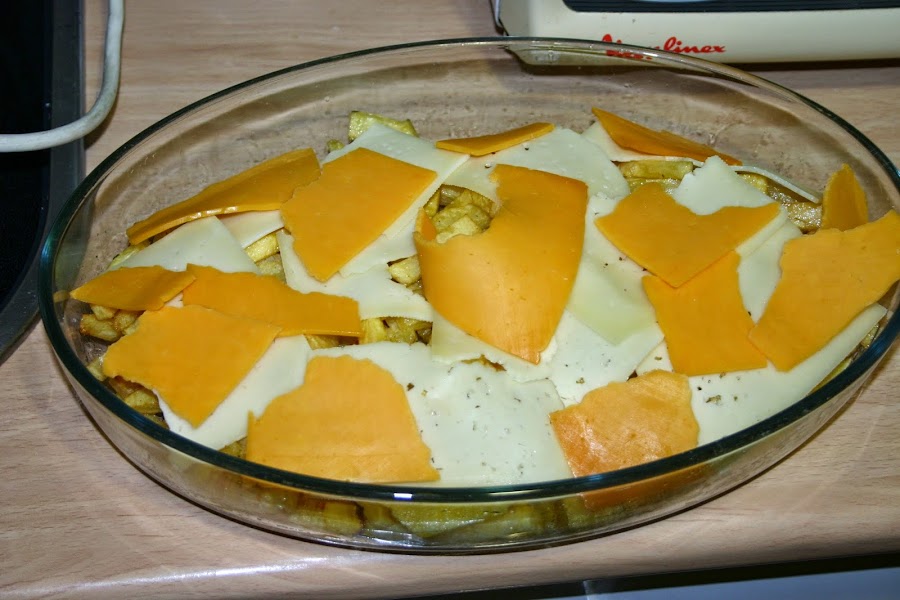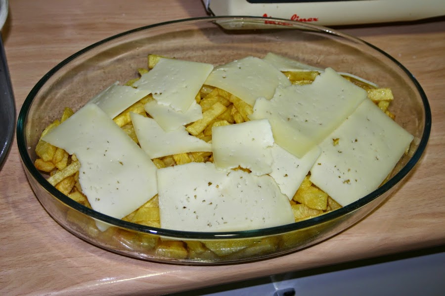 y metemos la fuente en el horno a fuego fuerte solo para que se funda el queso ya que la patata esta hecha