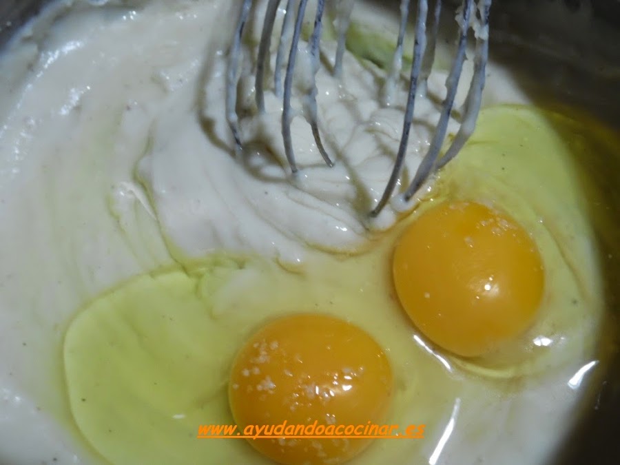 Incorporar a ésta dos huevos y batir bien para que queden bien mezclados