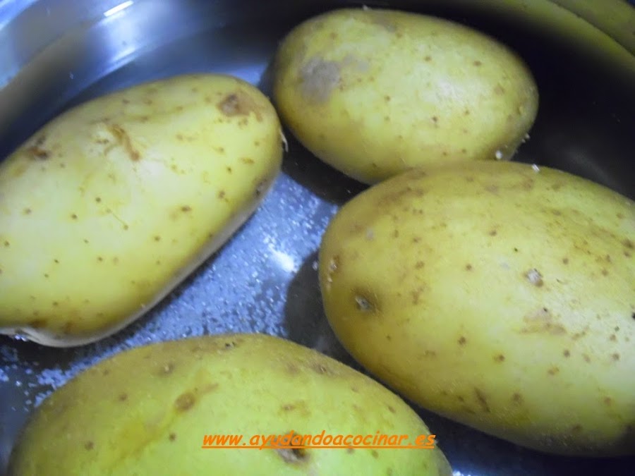 Lavar las patatas y ponerlas a cocer en agua con sal.