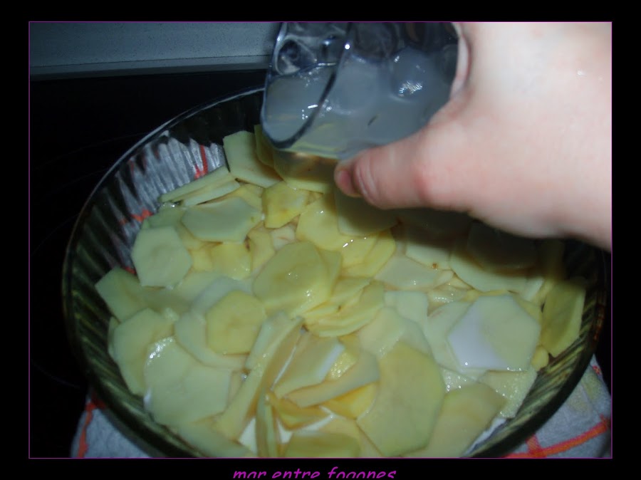 La cantidad de ingredientes va a depender de cuantas personas seais en casa pero el liquido que echeis No tiene que cubrir las patatas ya que si no nunca se evaporaría.