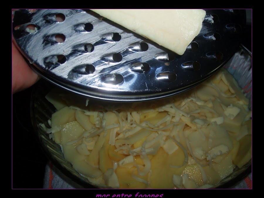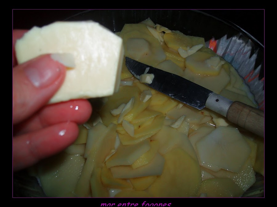 Esta receta es ideal para hacer a la vez que otra comida en el horno por ejemplo yo puse unos muslos de pavo en la bandeja de arriba y en la de abajo puse las patatas y se me hizo todo a la vez.