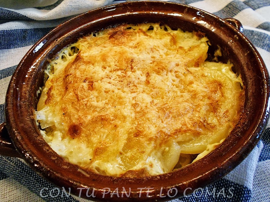 Las patatas gratinadas de hoy pueden servir como un primero, un acompañamiento o una cena, y en general les suele encantar a los niños, además de que es un plato muy económico que siempre viene bien. Se pueden hacer en una fuente grande, normalmente cuando las hago para acompañar, pero a mi me gusta más hacerlas en cazuelitas individuales y así para una cena está genial.