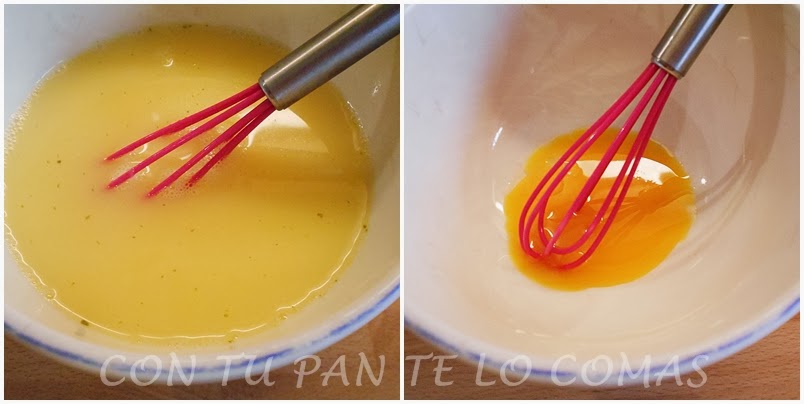 En un bol colocamos la yema y la diluímos con la taza de caldo.