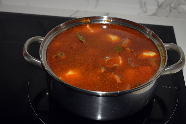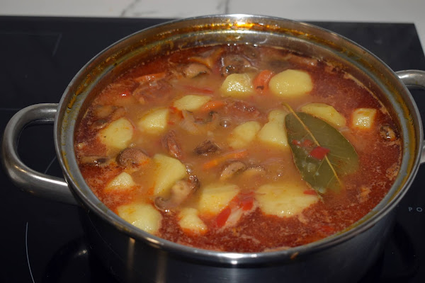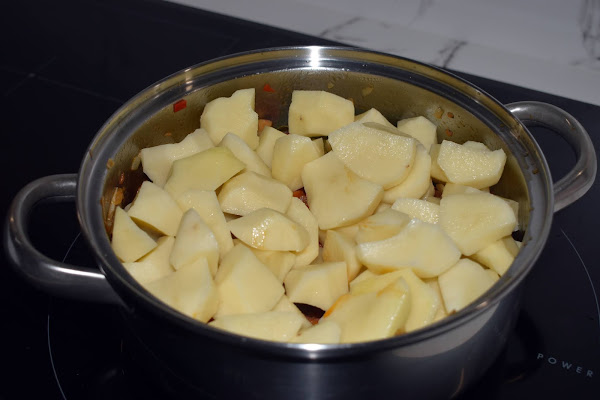 Cubrimos con agua y cuando eche a hervir, lo dejamos haciendo chup chup hasta que la patata este tierna y espese un poco el caldo.