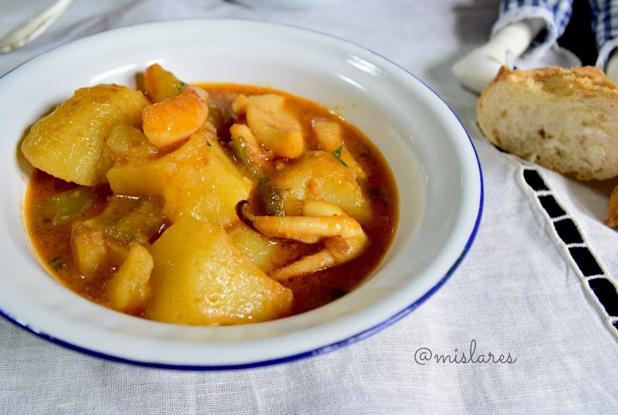 Pensando y sufriendo el fresco he preparado esta patatas guisadas con sepia que "quitan el sentido". Adelante con el guiso que el fresco ya esta llamando a las puertas.