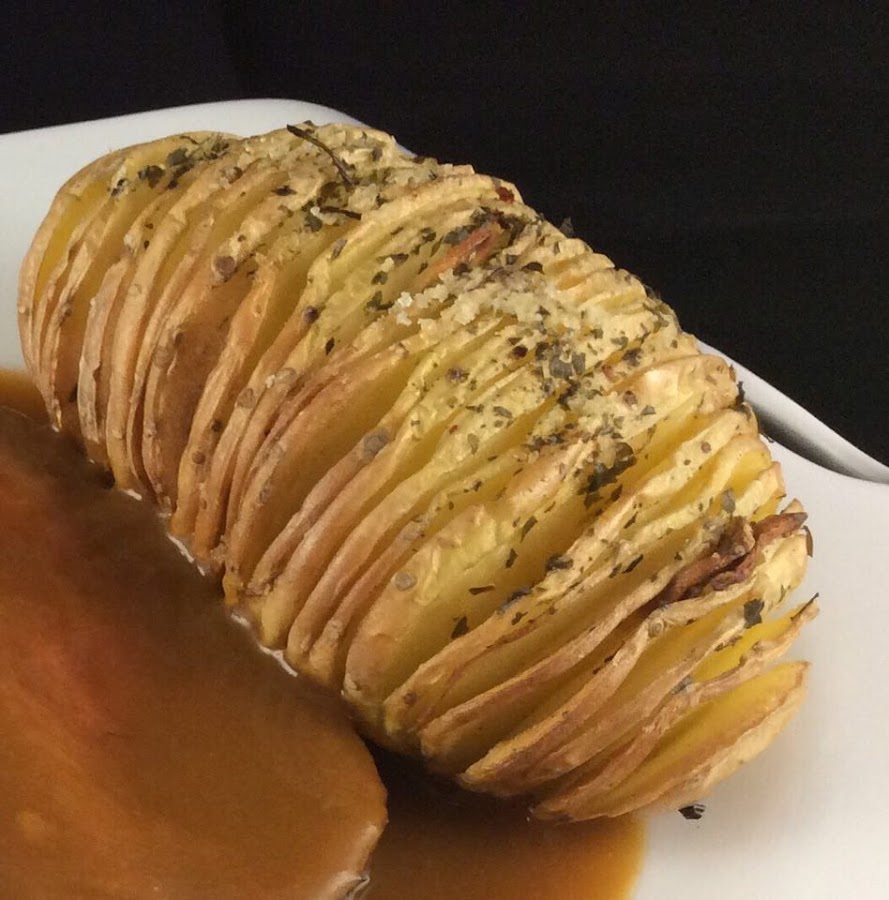 Cortamos las patatas en láminas lo más finas posible sin llegar hasta el final.