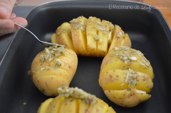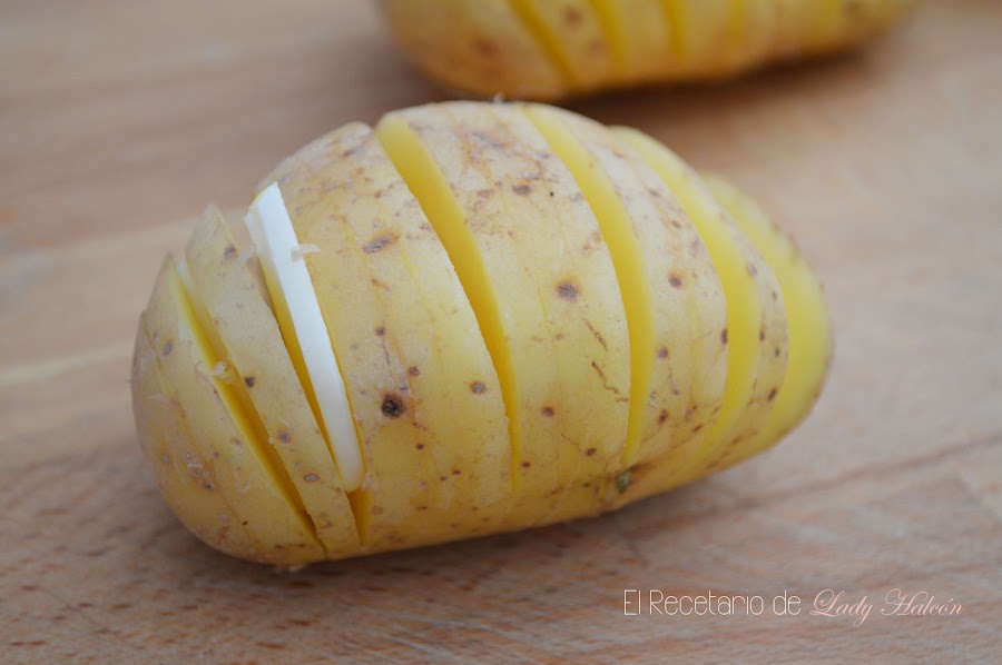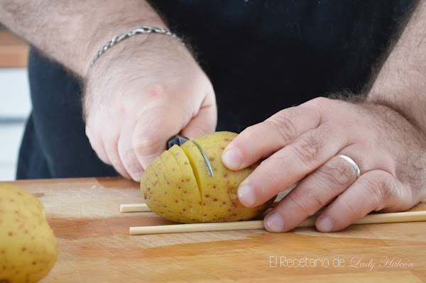 En su receta, Lola nos comenta que estas Patatas Hasselback fueron creadas en 1953 por un estudiante de cocina en el Restaurante Hasselbacken en Estocolmo y, la verdad, creo que dio con una presentación de lo más original. El estilo acordeón le da un toque diferente a las patatas asadas al horno y hace que absorban mucho más los sabores con los que se condimentan.