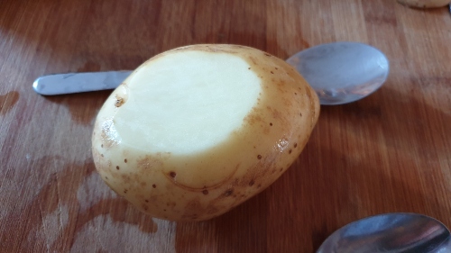 Para que se quede bien asentada la patata, haz un corte en una de las bases.