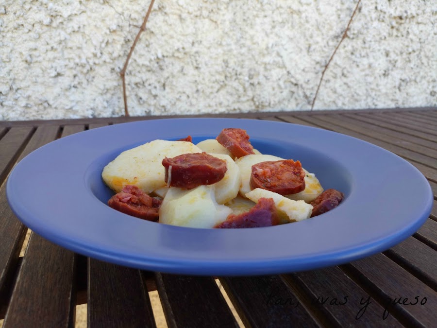A simple vista parece un plato más de patatas guisadas con chorizo, pero la adición de vinagre le da un gusto...diferente. A nosotros nos han gustado muchísimo, así que no puedo menos que recomendarlas.