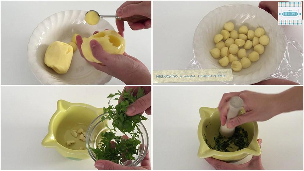 Con la ayuda de un sacabolas vamos sacando bolitas de patata hasta terminar con nuestras patatas. Con lo que nos queda podemos aprovechar para hacer un puré, por ejemplo.
