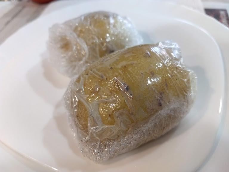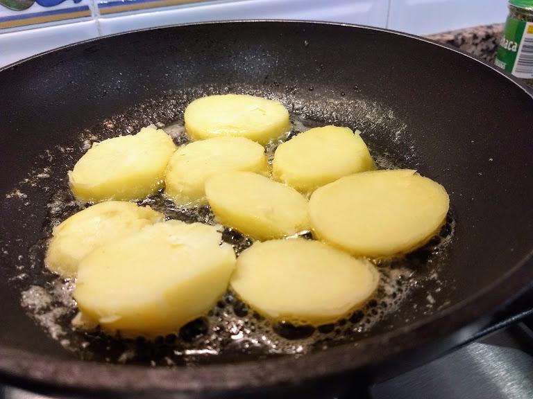 Envolvemos la patata en papel film y la metemos en el microondas durante 4 a 5 minutos según el grosor de la patata a 750 o hasta que esté tierna. Tienen que estar tiernas pero no excesivamente hechas. Si preferís las podéis hervir. Con piel. Echadlas cuando el agua ya esté hirviendo. Evidentemente, va a depender del tamaño de la patata pero, como referencia, las medianas necesitarán unos 20 minutos y las más grandes 30.