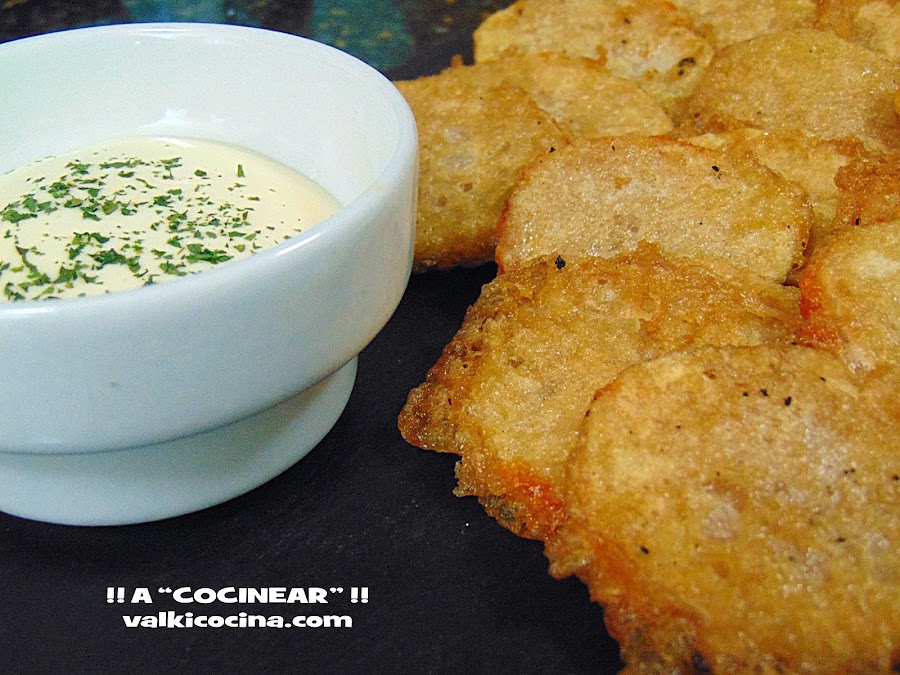 Ya sólo nos queda servir en una fuente y acompañar de nuestra salsa favorita, yo lo he hecho con una estupenda mayonesa casera.