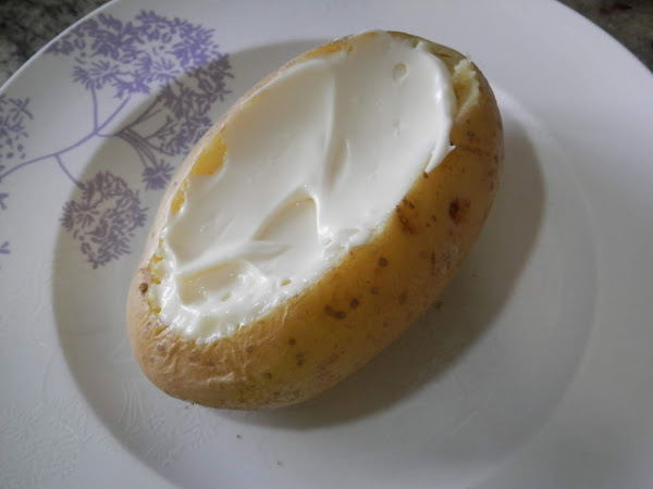 Cuando estén, corta la parte superior y vacía la patata con la ayuda de una cuchara.