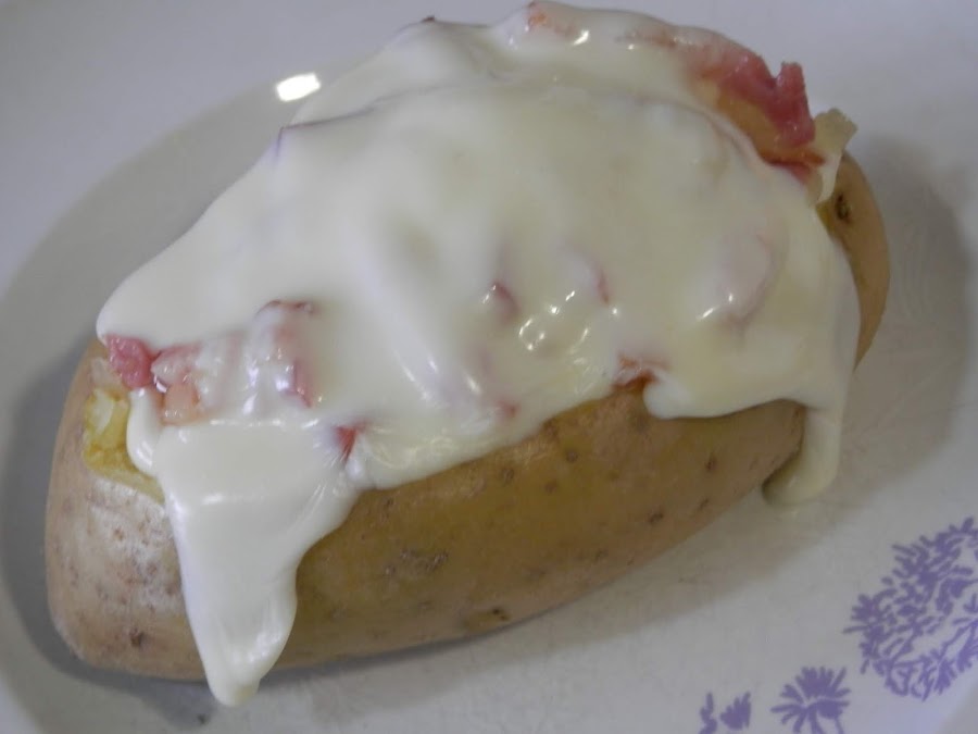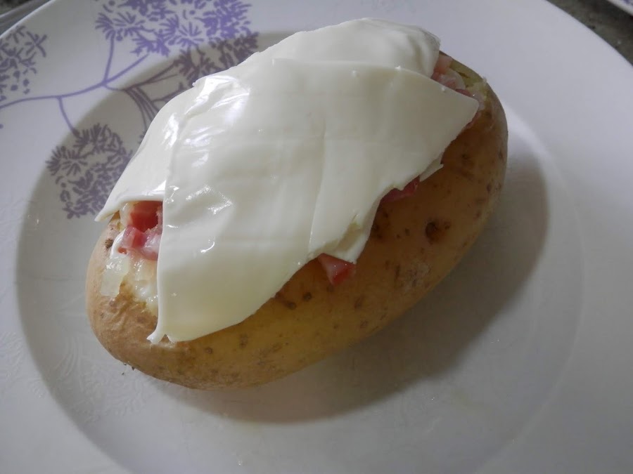 Cuece las patatas envueltas en papel film en el microondas. Ponlo a máxima potencia durante 8 minutos. Si, transcurrido ese tiempo, no están, ponlas un par de minutos más.