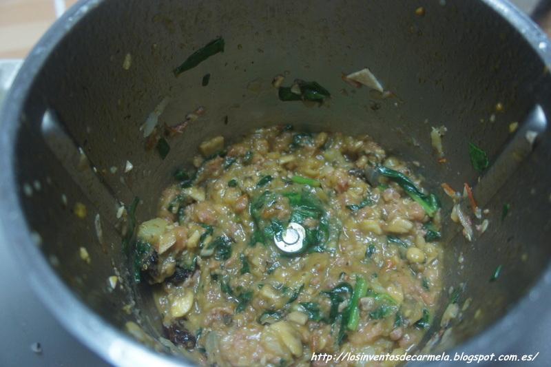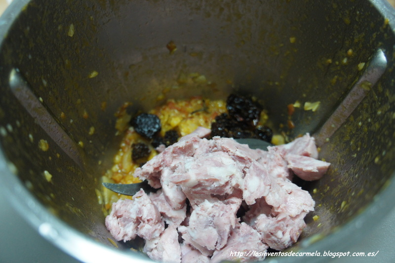 5) Agregar la butifarra y los tomates secos y rehogar 4 minutos, temperatura varoma, velocidad 1.
