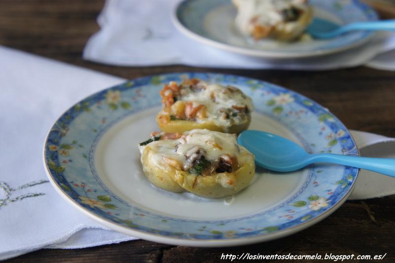 PATATAS RELLENAS CON BUTIFARRA, VERDURAS Y QUESO PROVOLONE