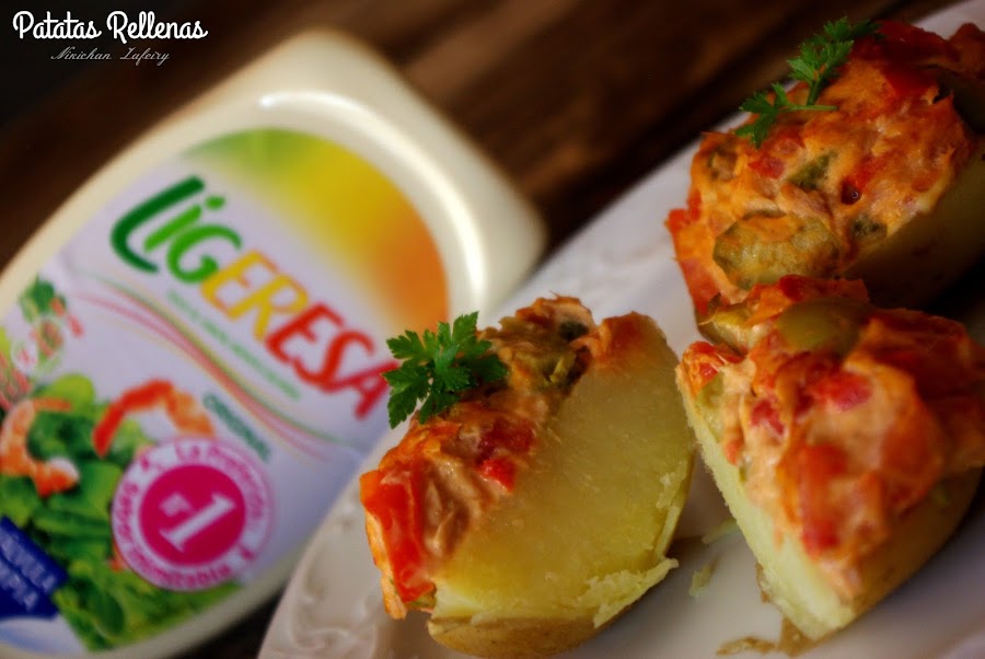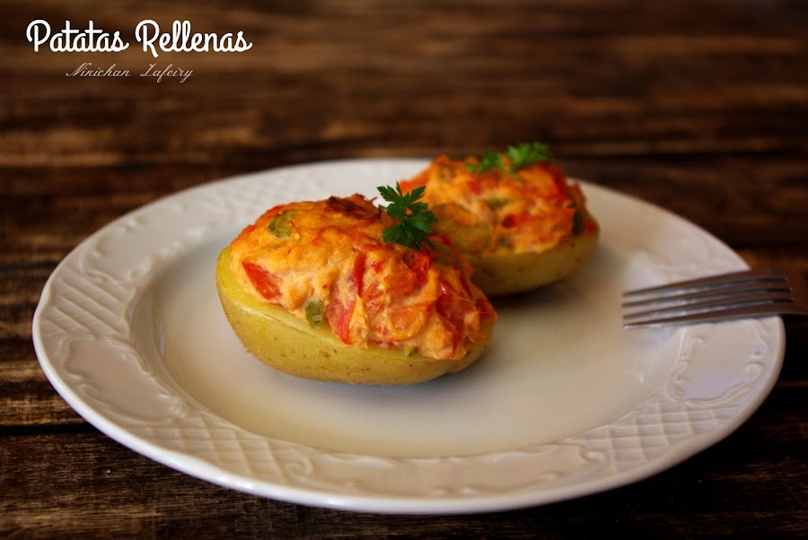 Hoy para comer vamos a preparar unas ricas patatas rellenas. Son fáciles de hacer y las puedes dejar casi preparadas para la vuelta del trabajo o la playa. Para esta receta yo me decanté por un relleno ligero, con ese toque avinagradito de los encurtidos. Las acompañamos con una ensalada sencilla y con un poco de pan tostado, por si te apetece la idea. Vamos con la receta!!