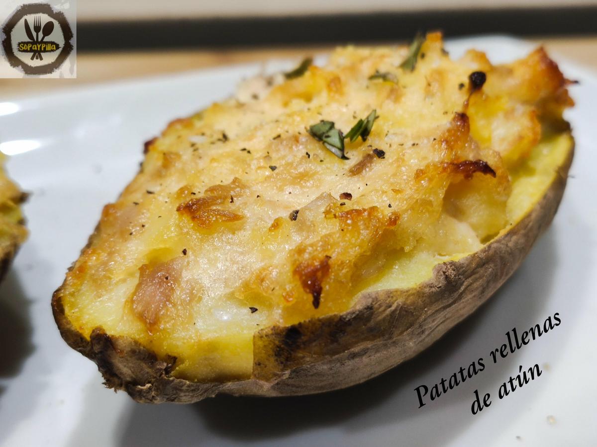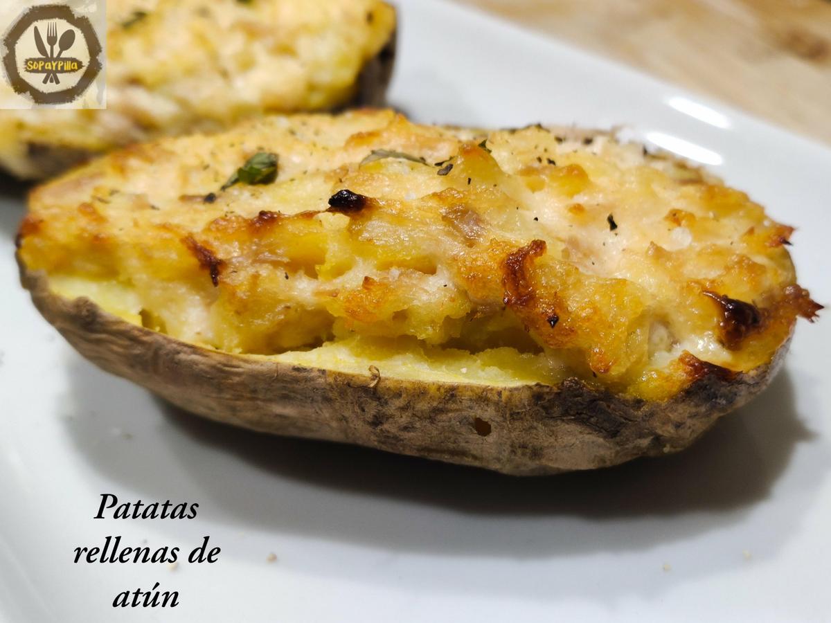 Mezclar la pulpa con el atún, la mayonesa y salpimentar. Rellenar los cascos de las patatas con esa mezcla y gratinarlas has que queden doradas y crujientes. Antes de servir picar alguna hierba aromática fresca por encima. (Perejil, orégano, cebollino…)