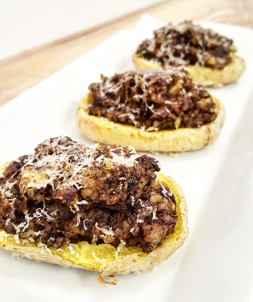 Las patatas rellenas no es que sea una receta nada novedosa pero el otro día, viendo un vídeo de un blog que sigo, maravilloso por cierto (que se llama Las María Cocinillas y que os recomiendo sí o sí), vi una receta de patatas rellenas de carne y yo la he cambiado por morcilla y os la cuento por aquí.