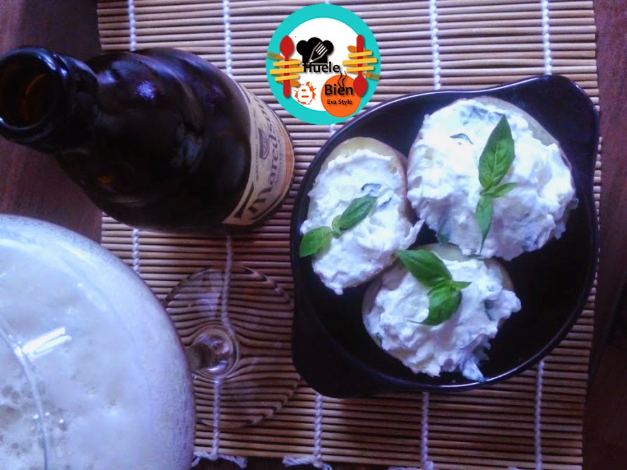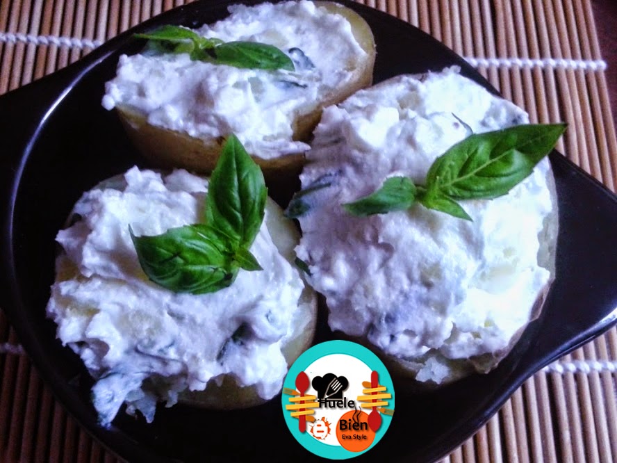 Patatas rellenas con queso crema, albahaca y ajo. Un rico aperitivo para reparar en cualquier ocasión...El pasado sábado las prepare para el partido de fútbol; el clásico Real Madrid Barcelona.
