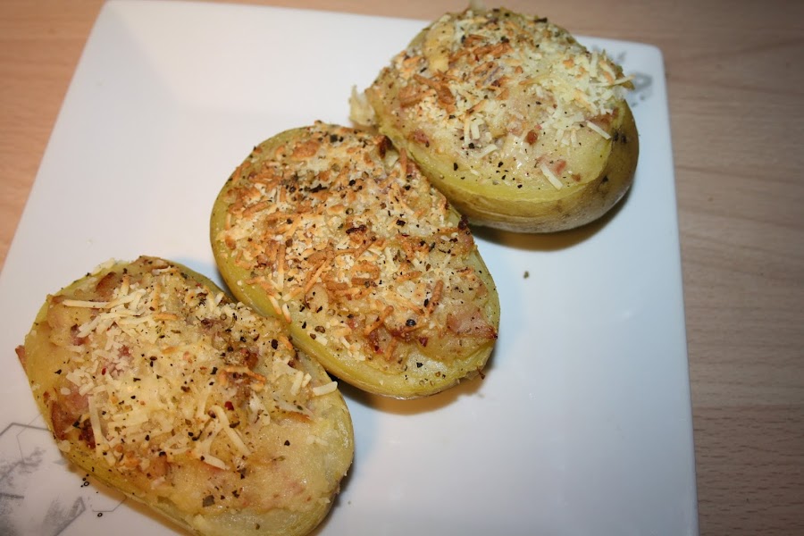 RECETA DE PATATAS RELLENAS DE SALCHICHAS, BACON Y MOSTAZA