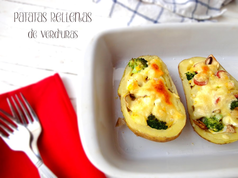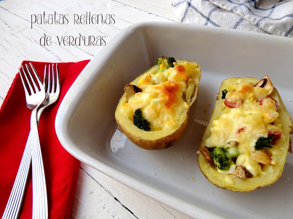 Rellenamos las patatas y cubrimos con el queso rallado, y las llevamos al horno precalentado unos 20 minutos, a 180ºC hasta que estén doradas.