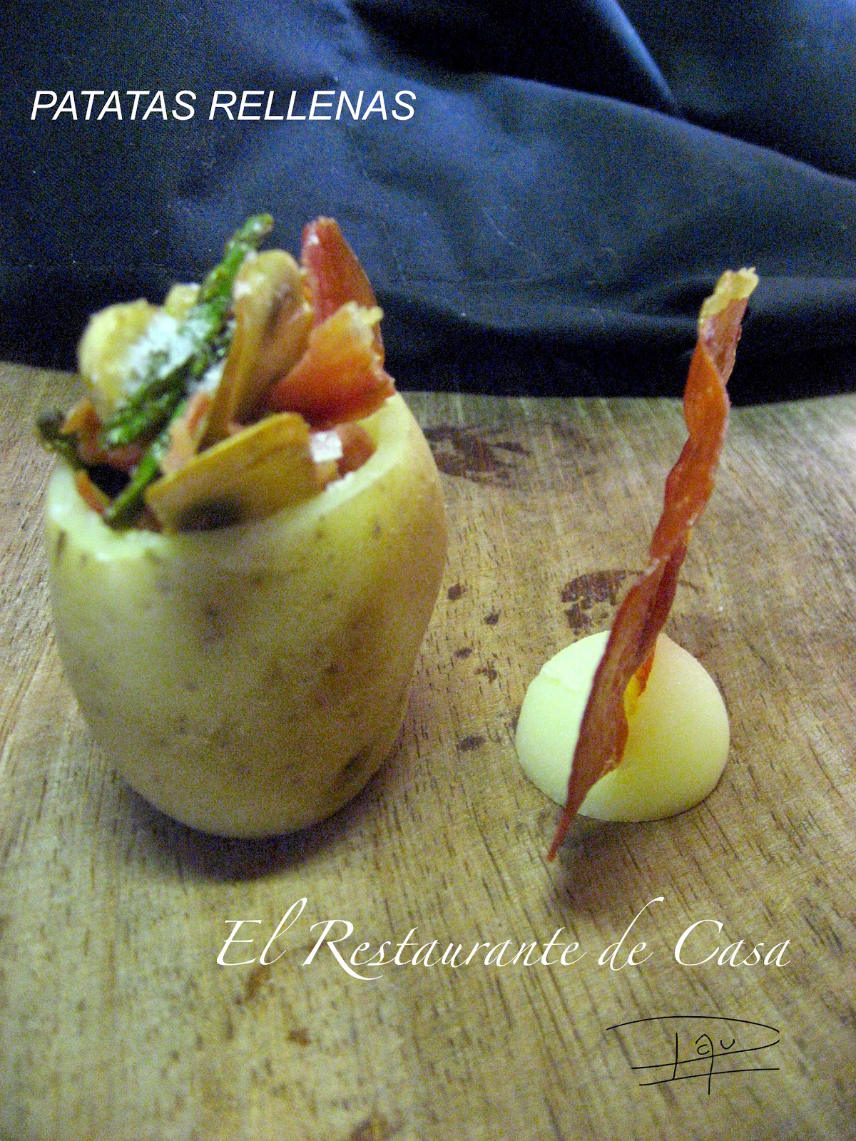 No es el plato más original de todos, pero son baratas, se pueden hacer de mil maneras y a quien no le gustan?, exceptuando a los que habéis dicho que no, a la gran mayoría les encantan, de una o de otra manera y para aportar mi granito de arena, hoy os dejo estas que espero os gusten tanto como a nosotros, PATATAS RELLENAS CON CHAMPIÑONES, ESPÁRRAGOS TRIGUEROS, JAMÓN Y UN POCO DE AI I OLI.