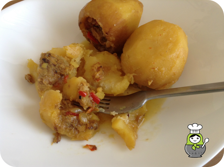 Ponemos la tartera a fuego alto y cuando levante hervor, bajamos el fuego y dejamos que se cuezan durante unos 30 minutos (dependerá del tamaño de las patatas).