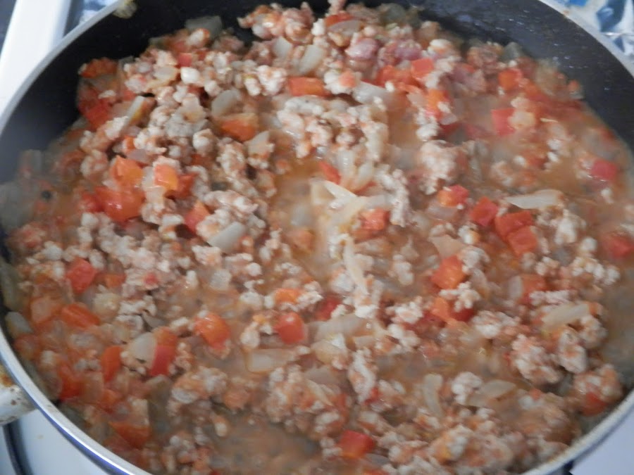 Si ya tenemos la verdura pochadita, añadiremos ahora la carne picada y daremos unas cuantas vueltas.