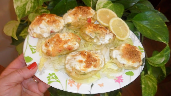 Las dejamos enfriar por completo y retiramos parte de su carne con una cucharita vaciadora y las pelamos para que se vean mas bonitas.