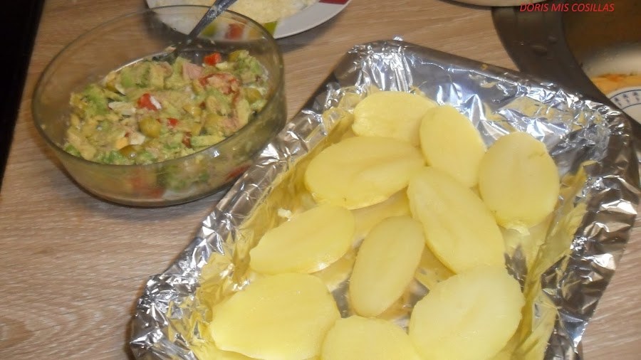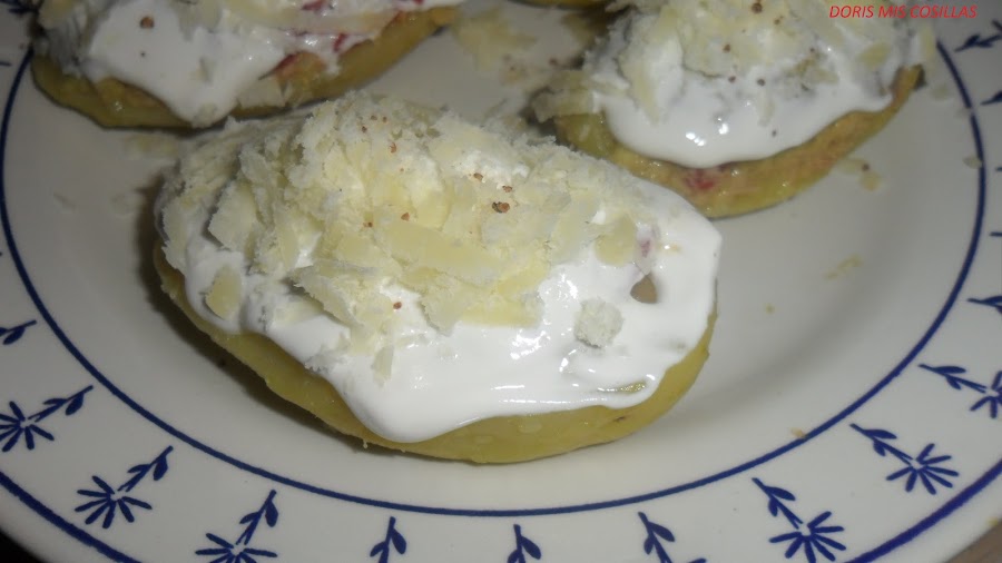 Le agregamos un poco de salsa bechamel, rellenamos las patatas con la misma cucharita.