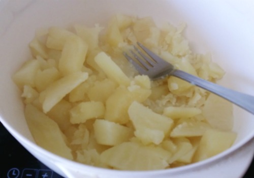 Pon la olla a fuego fuerte y, cuando el agua empiece a hervir, déjalas cocer durante 20 minutos o hasta que estén blanditas. Puedes comprobarlo pinchándolas con un tenedor, deberás notarlas blanditas. Cuando estén blandas las sacas, las escurres y las pisas con un tenedor o las pasas por el chino.
