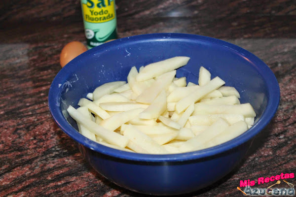 El corte ideal para estas patatas seria en bastoncillos de 1 centímetro de grosor.