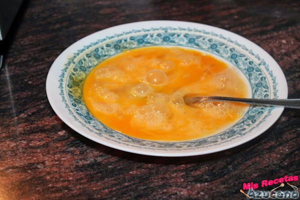En un plato o bol casaremos los huevos, le pondremos un poco de sal y batiremos, reservamos.