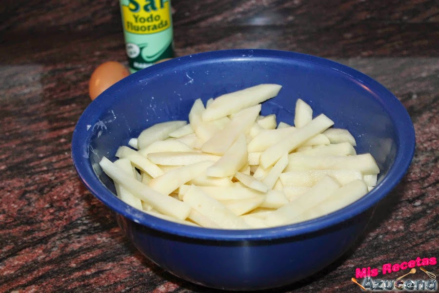 Una vez la tengamos cortadas las lavaremos, las salaremos y las freiremos en tandas en una sartén o en freidora como queramos, cuando tangamos una tanda lista la pondremos sobre un papel absorbente para quitarle el exceso de grasa.