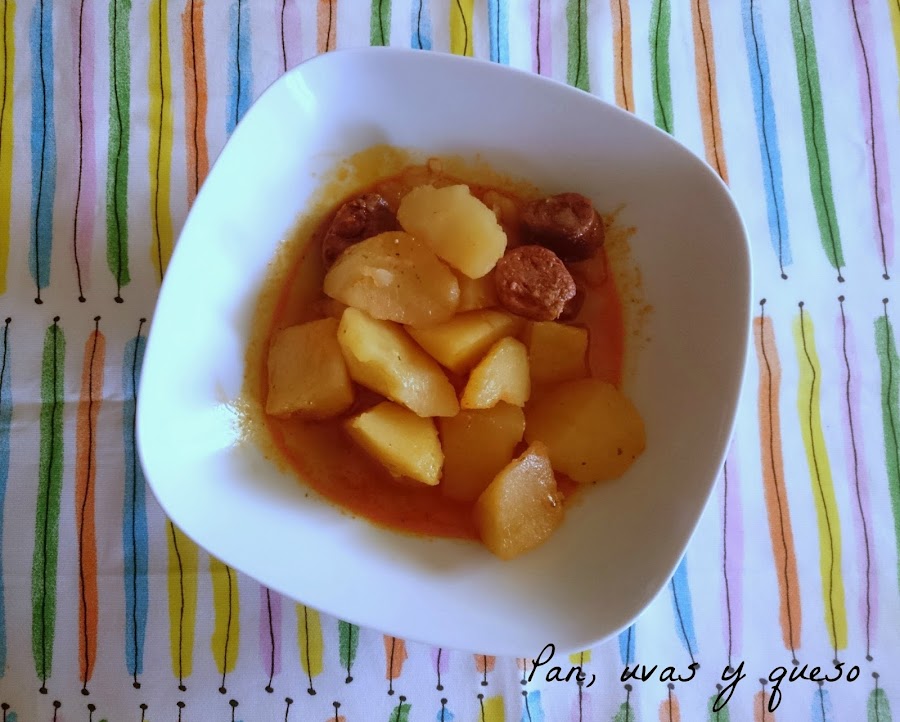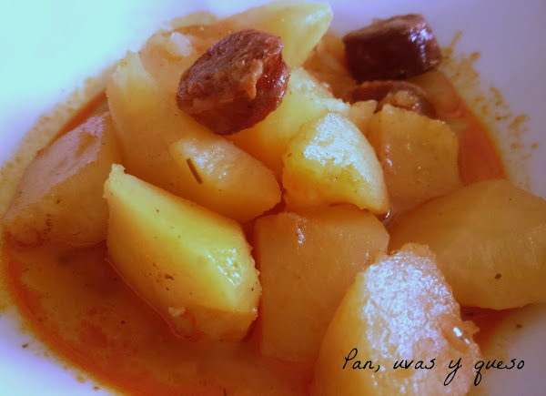 Hoy le toca el turno a uno de esos guisosa base de patata que tanto me gustan. Son muy parecidas a las patatas a la riojana pero la presencia de la hierbabuenales da un toque especial.