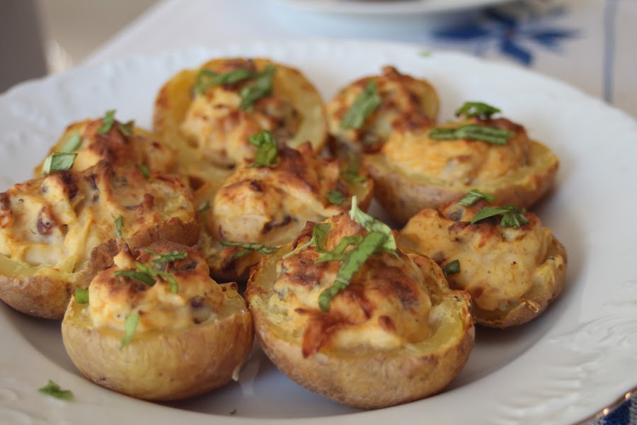 7) Vamos a rellenar las mitades de las patatas y llevaremos al horno hasta gratinar. Aproximadamente 5 minutos, dependiendo de tu horno. Luego servir y disfrutar!!!!!