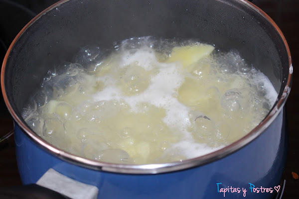 Cocemos las patatas en abundante agua hasta que estén tiernas.