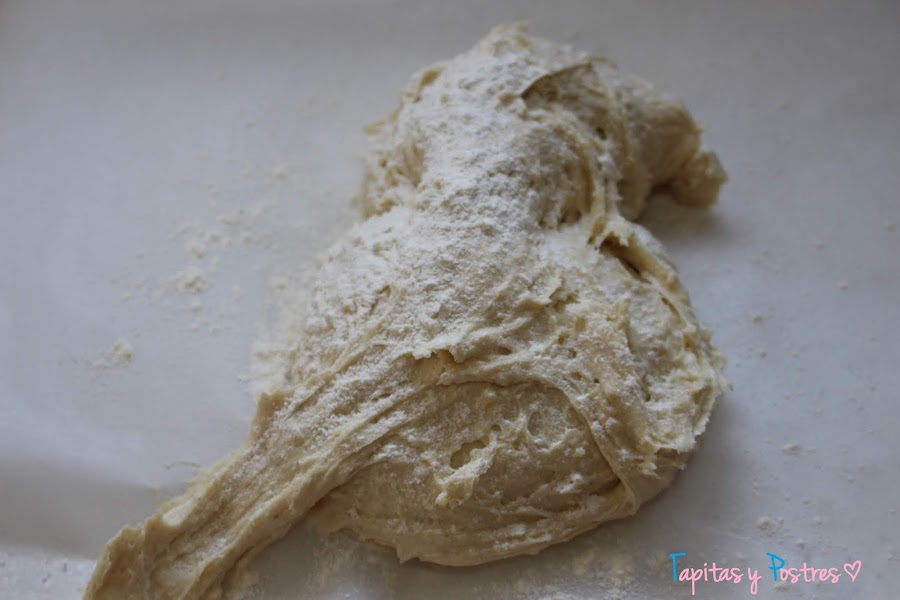 Debe quedarnos una masa homogénea y fácil de manejar. Si es necesario añadimos un poco mas de maicena hasta lograr la textura adecuada.